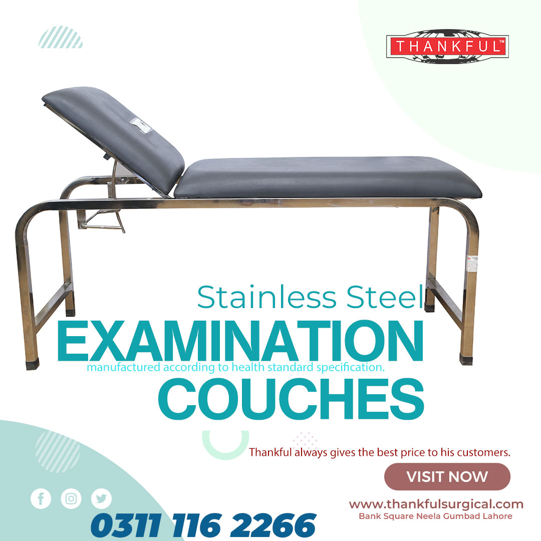 Setting up a clinic or upgrading medical furniture is a decision that directly affects the patient experience and clinical workflow. Thankful Surgical simplifies this process by offering the most competitive examination couch price in Lahore, Pakistan – giving doctors specialists and healthcare facilities across Pakistan access to high-quality exam couches that combine comfort durability and professional design.  Seriously Whether you’re building a new office or replacing worn-out equipment Thankful Surgical has the right couch for every clinical setting , setting and budget.