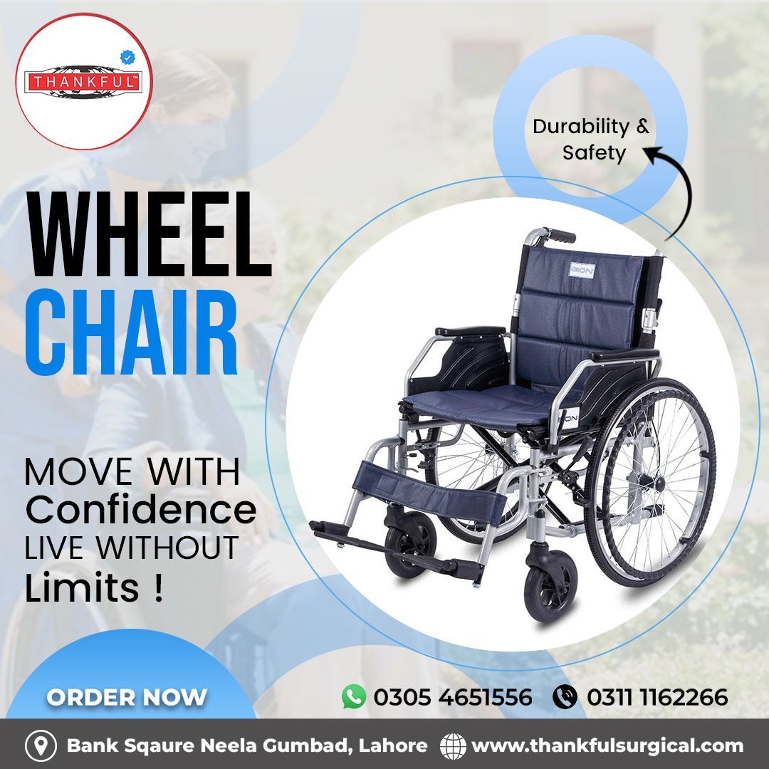 Thankful Surgical works with those companies that supply the best wheelchairs in Pakistan with long-term use, comfort, and high quality. We provide this wheelchair in Lahore, Pakistan, at a reasonable price if you are unable to walk. Order now to get best price on a wheelchair in Pakistan.